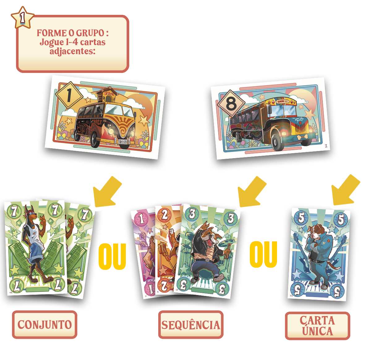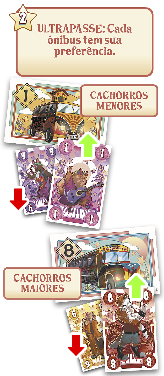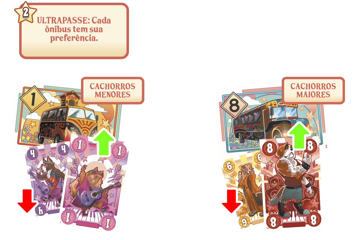 Neste jogo, cada jogador deve colocar combinações de cachorros cada vez melhores nos ônibus. E para isso:
